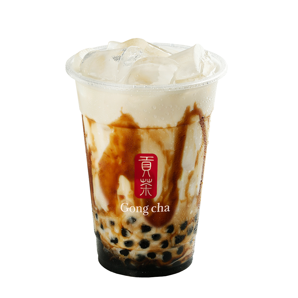 Trà sữa Oolong đậm đà được dùng kèm với trân châu dai dai, Pudding trứng béo ngọt và Sương sáo thanh mát.