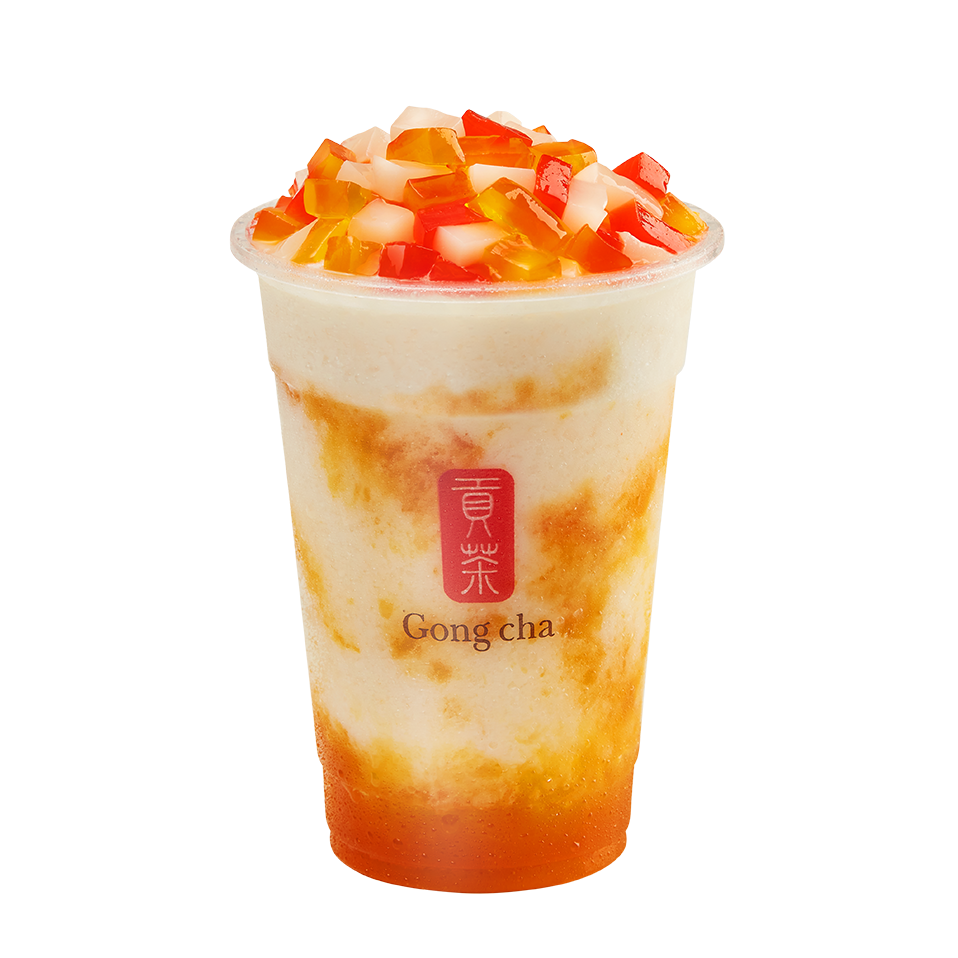Trà sữa Oolong đậm đà được dùng kèm với trân châu dai dai, Pudding trứng béo ngọt và Sương sáo thanh mát.